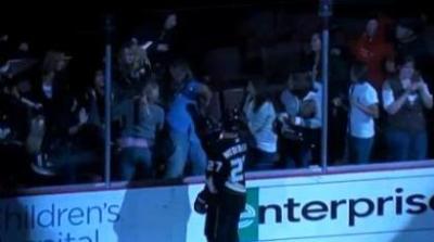 Ο 36χρονος αθλητής χόκεϊ πλησίασε στις κερκίδες, δώρισε το μπαστούνι του σε μία φίλαθλο της ομάδας, αλλά αυτό δεν έφτασε ποτέ στα χέρια της. Δύο άνδρες όρμηξαν για να πιάσουν το μπαστούνι κι επειδή, προφανώς, το ήθελαν πολύ και οι δύο αποφάσισαν να μονομαχήσουν για αυτό!!!