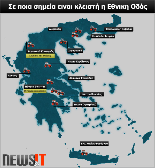 Σε ποια σημεία ειναι κλειστή η εθνικη οδος...