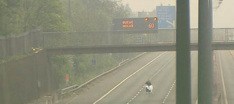 Ο άγνωστος άνδρας έβγαλε μέσα στη μέση του δρόμου στον αυτοκινητόδρομο Μ1 την σιδερώστρα του και άρχισε να σιδερώνει.